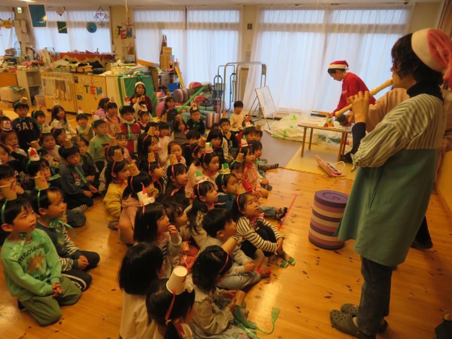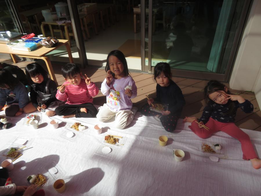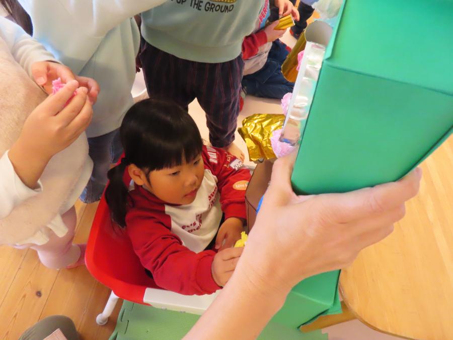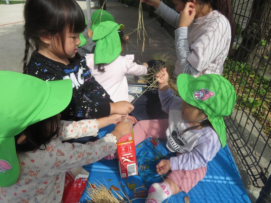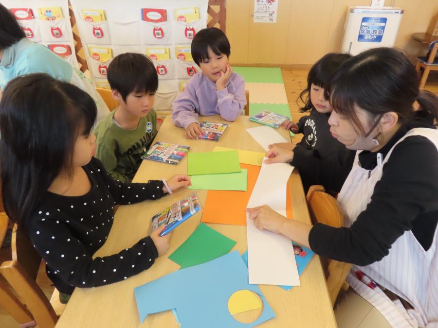 お集まりでも、うめ、もも、さくらさんに勤労感謝の話しをし、「例えば身近にいるお父さんやお母さんおじいちゃんやおばあちゃんも、たくさんお仕事頑張ってくれているよね!だから、いつもありがとうと感謝の気持ちを伝えられたらいいね」などの話しをしました。もしかしたら、お家で「ありがとう」と言ってくれたお友だちもいるのではないでしょうか?