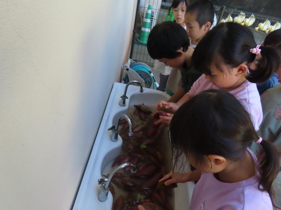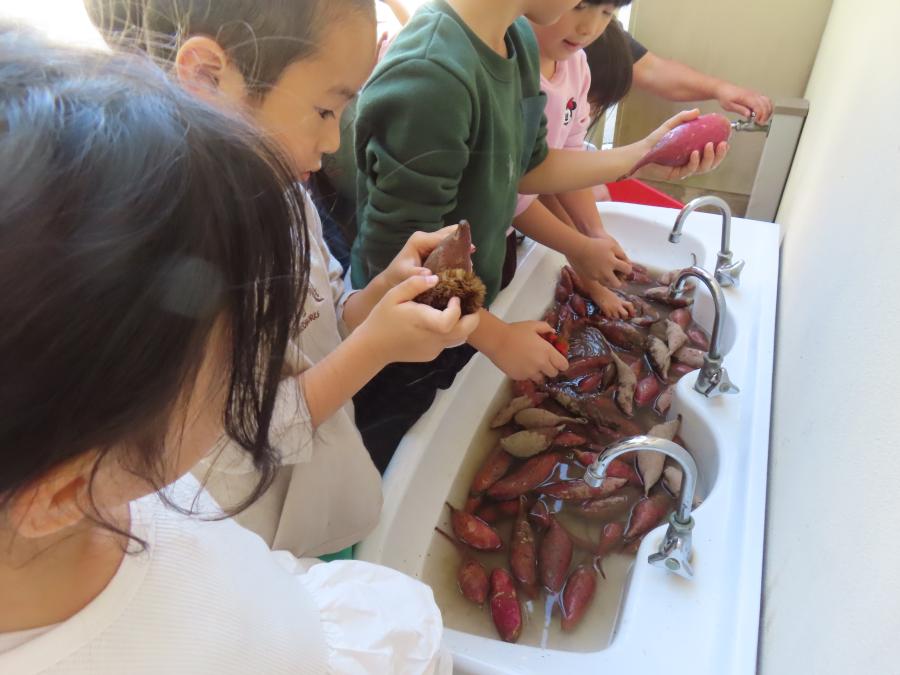 お野菜当番・・・・・たまねぎの皮をむいたり、ジャガイモを洗ったりします