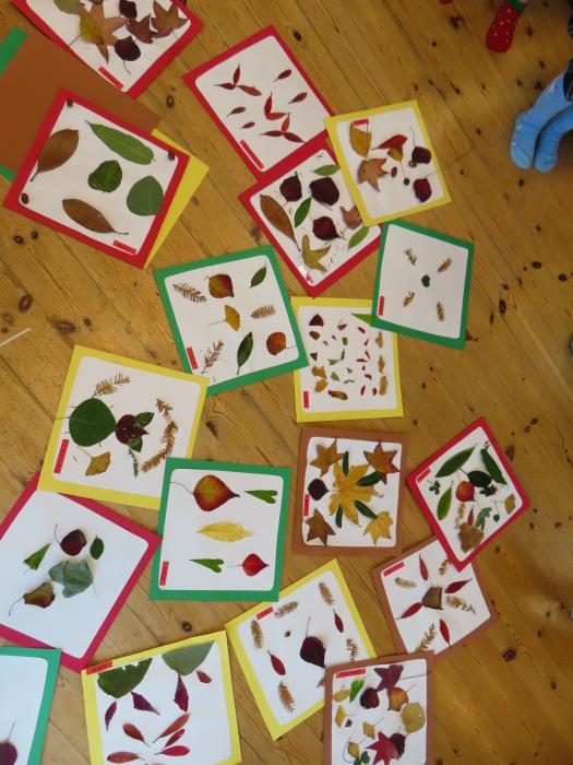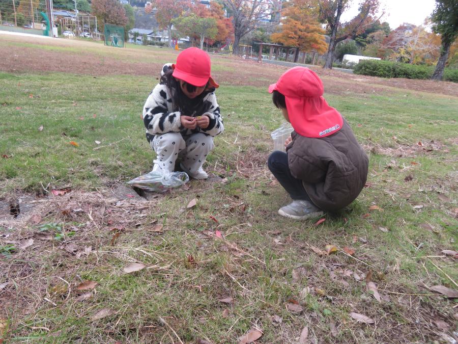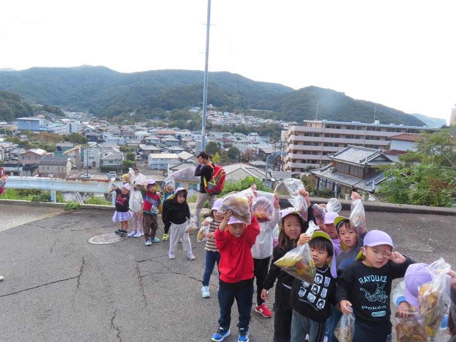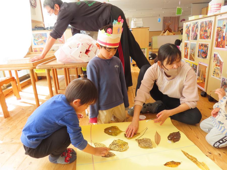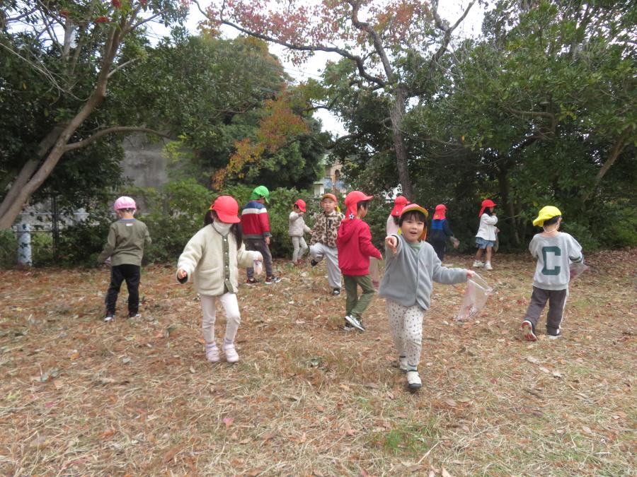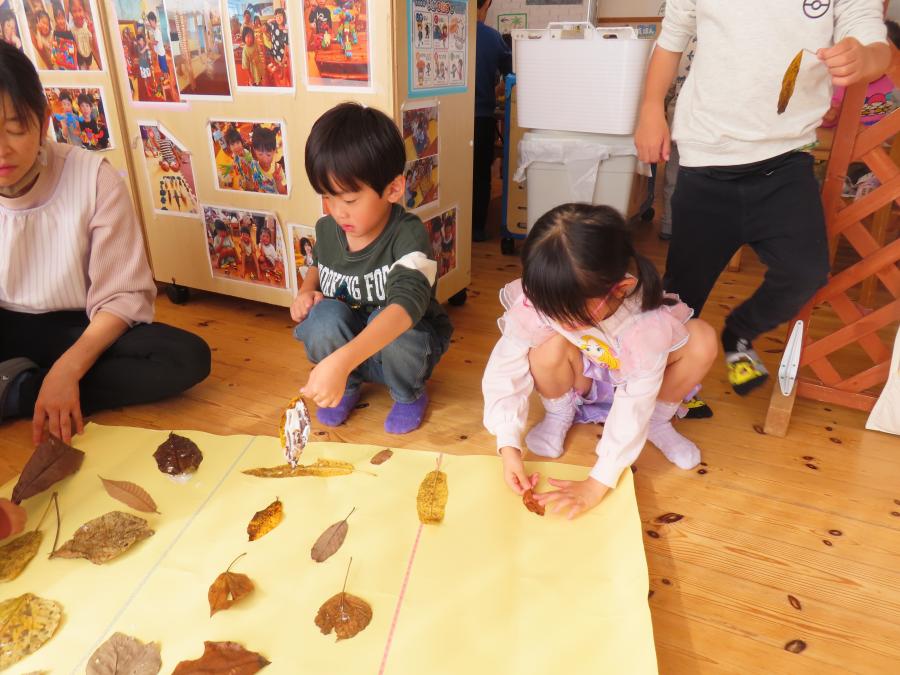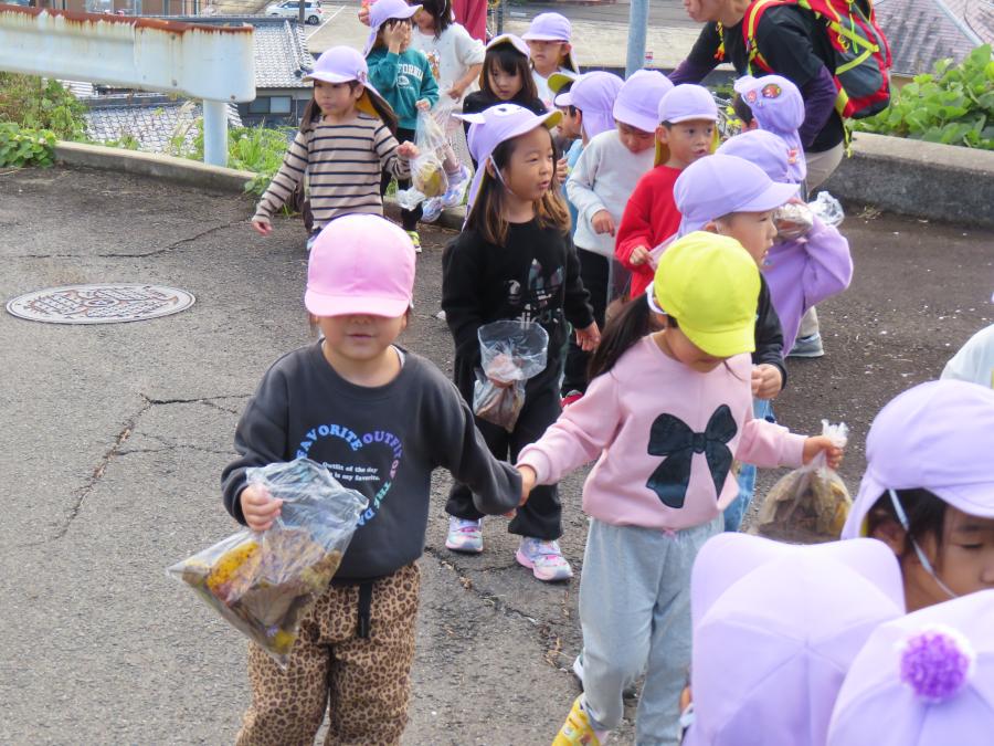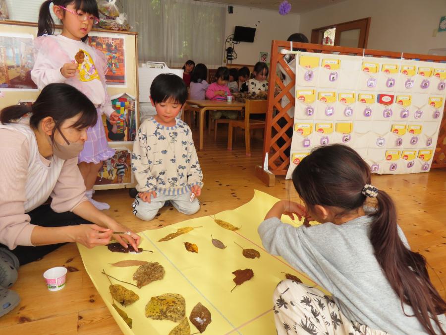 園周辺へのおさんぽでたくさん葉っぱや木の実を見つけました![]()