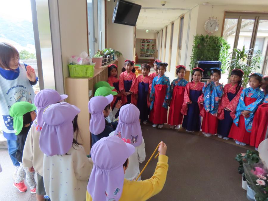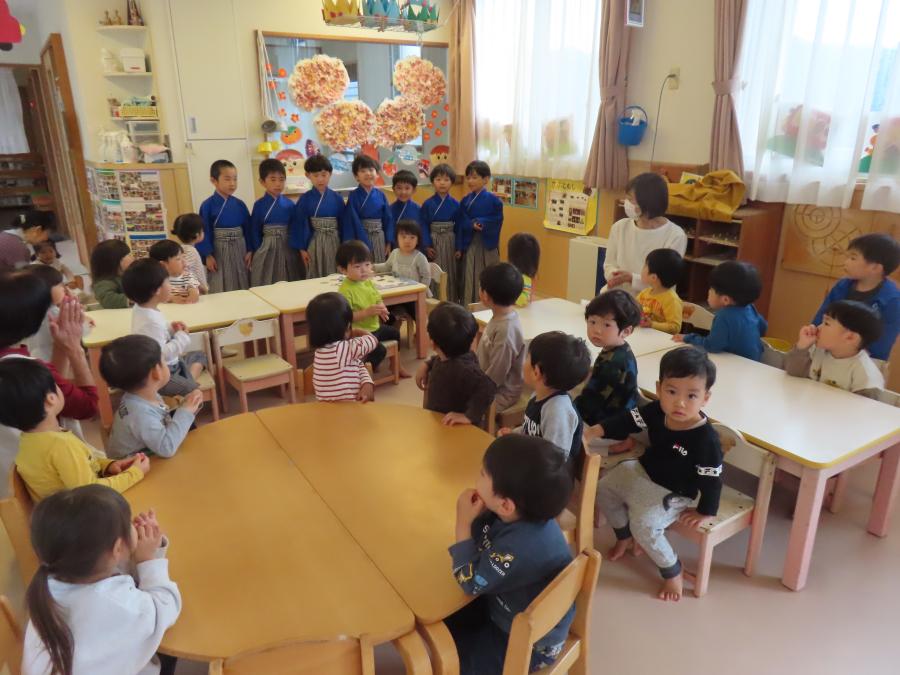 あぜかりこども園ではさくら組さんがきれいな袴を身にまといお祝いをしました