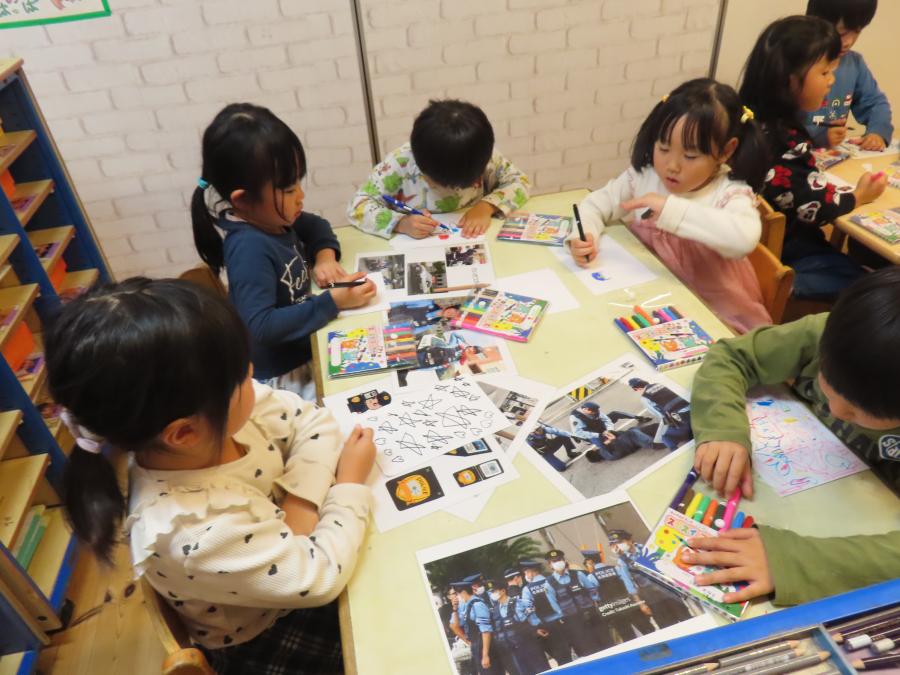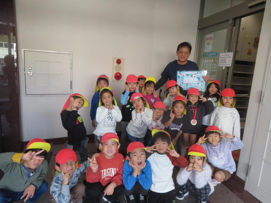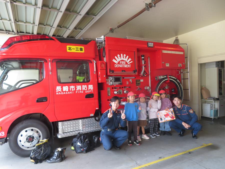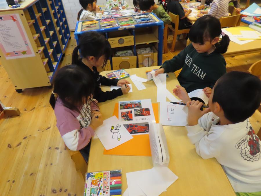 あぜかりこども園でお世話になっている〈かみむら小児科の先生〉〈かわさき歯科の先生〉〈消防車の消防士さん〉〈交番のおまわりさん〉に代表でさくら組さんがお手紙を描き、お届けに行きました