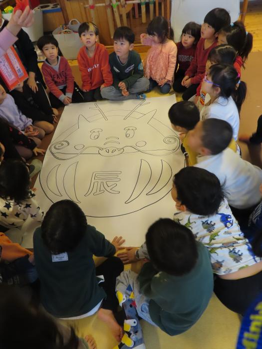下書きや色をよく見て、さくら組(年長クラス)がリードしながら取り組みました。