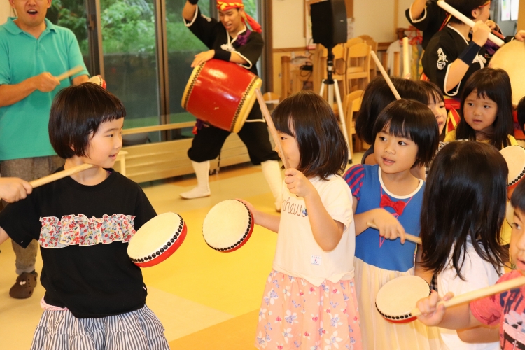 みんなで踊ったり、リズムを太鼓で叩いたりとみんなで楽しむ場面もありました。
