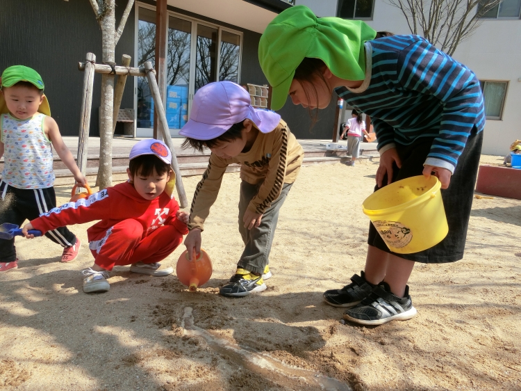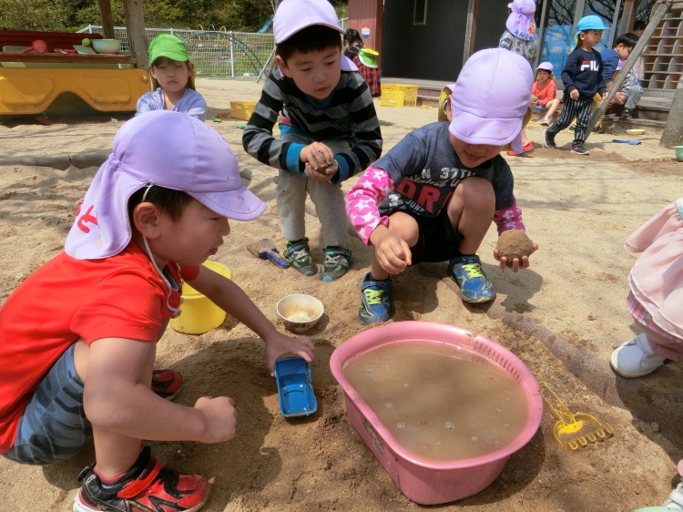 園庭ではみんなが大好きな泥んこ遊び![]()
