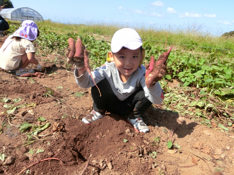 たっくさんのお芋を持って満足そうに帰ってきました![]()