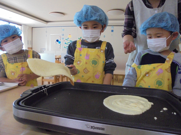 自分で生地を流し、焼いて、好きなトッピングをしました