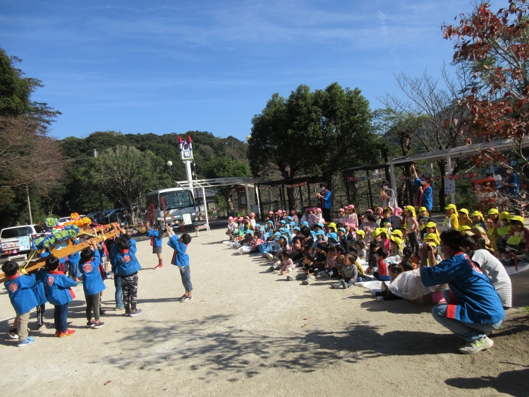 さくら組のお兄さんお姉さんがおみこしを担いで入場しました。