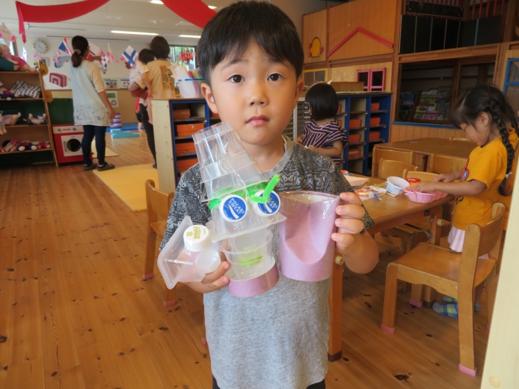 天気が悪かったり、暑すぎて戸外遊びが出来ない日には、廃材遊びも充実です。