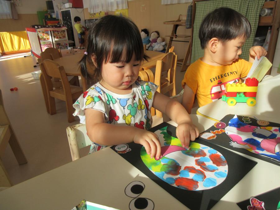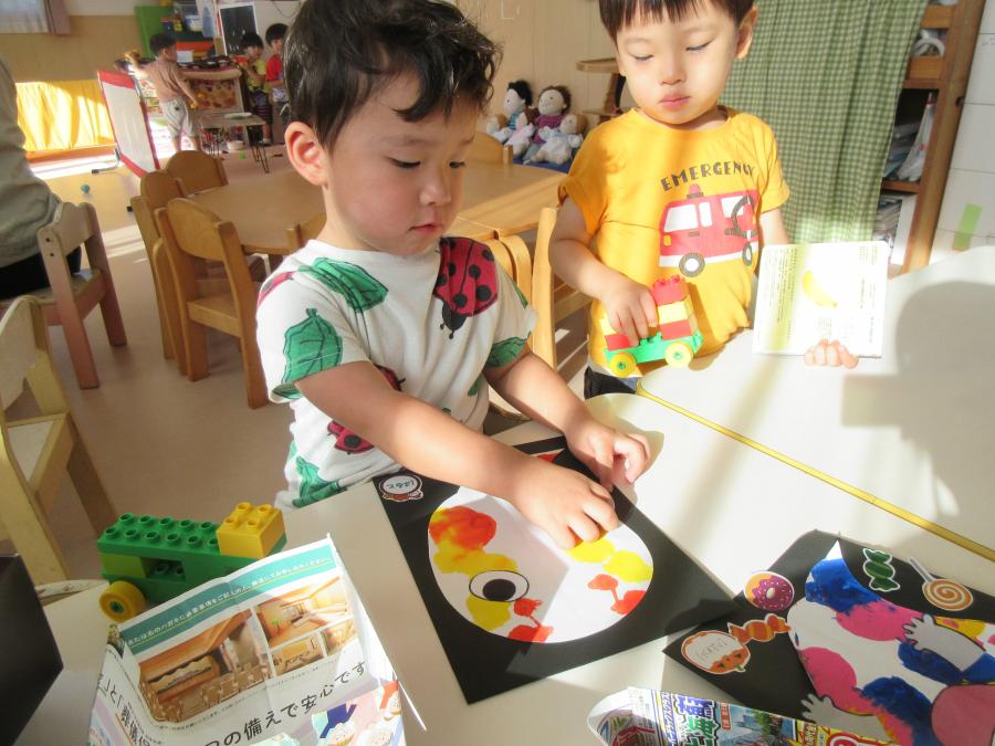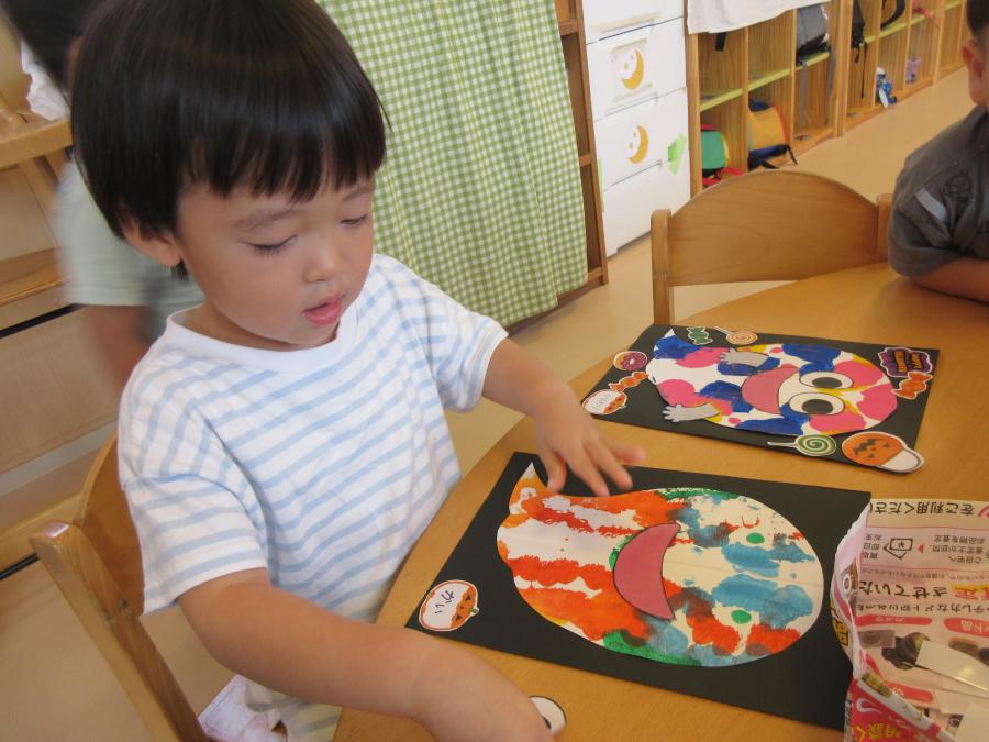 出来た模様を見せ合って、友だちとのコミュニケーションを深めるねらいがあります。