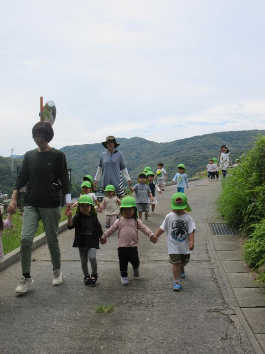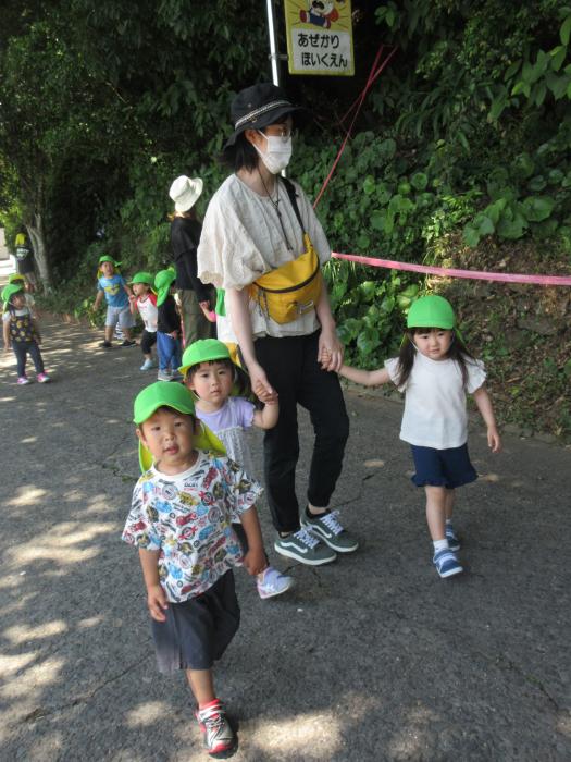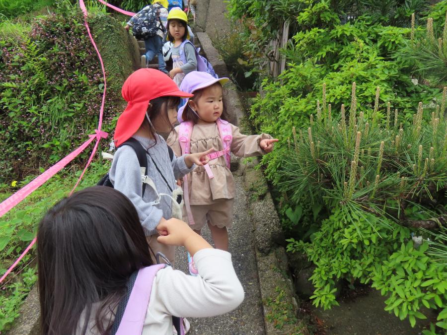 うめぐみさんとさくらぐみさんはペアのお友だちと、ももぐみさんは同じチームのもも組さん同士で手を繋いでお散歩に出かけました