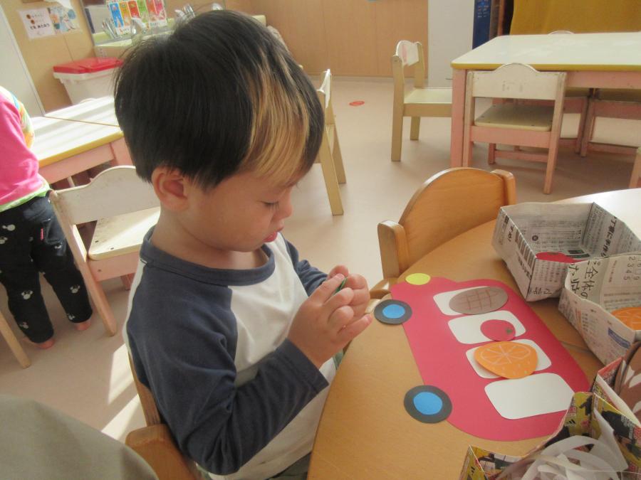 大きさがまぎらわしい葉っぱに「これはちゅうくらい?ちいさい?」と悩み悩みがんばってましたよ![]()
