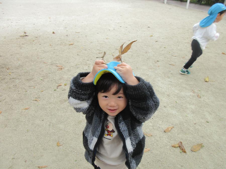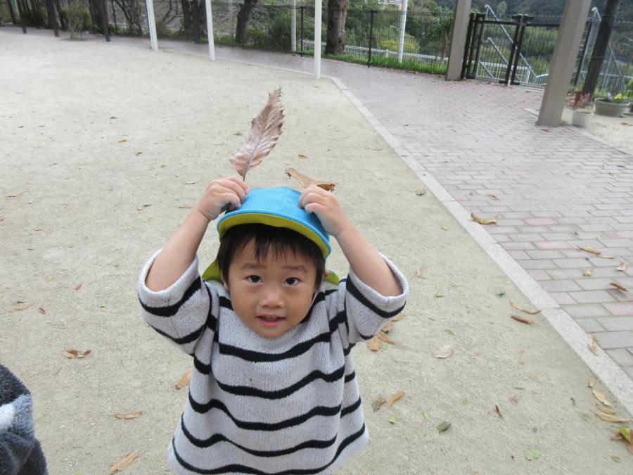 園周辺へのおさんぽでたくさん葉っぱや木の実を見つけました![]()