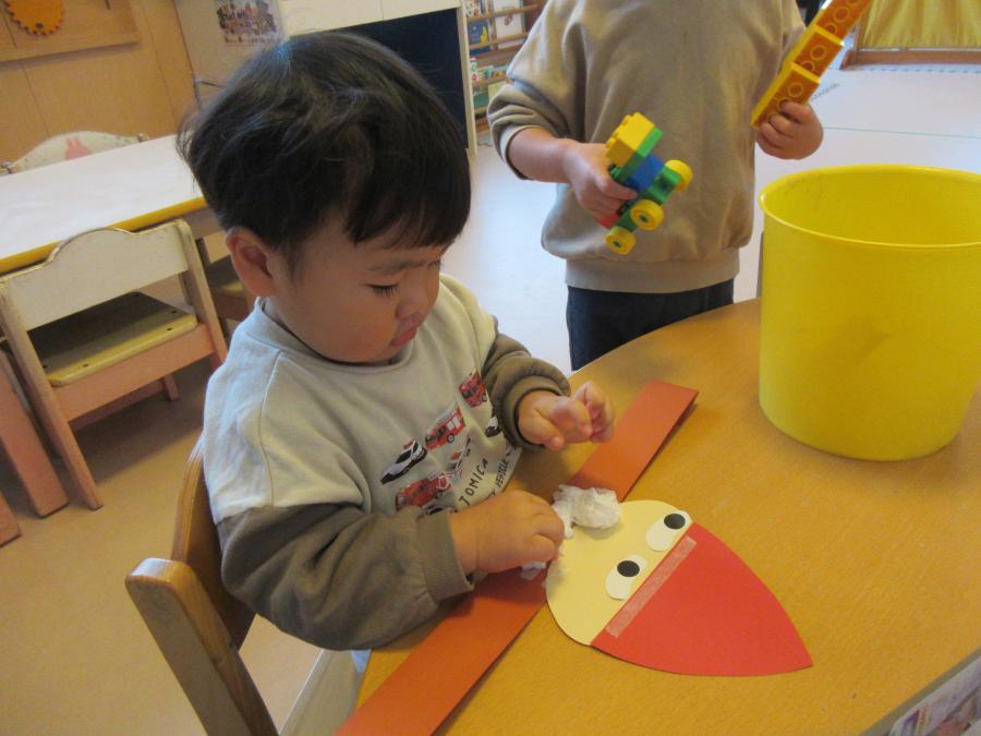 お集まりでも、うめ、もも、さくらさんに勤労感謝の話しをし、「例えば身近にいるお父さんやお母さんおじいちゃんやおばあちゃんも、たくさんお仕事頑張ってくれているよね!だから、いつもありがとうと感謝の気持ちを伝えられたらいいね」などの話しをしました。もしかしたら、お家で「ありがとう」と言ってくれたお友だちもいるのではないでしょうか?