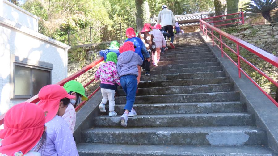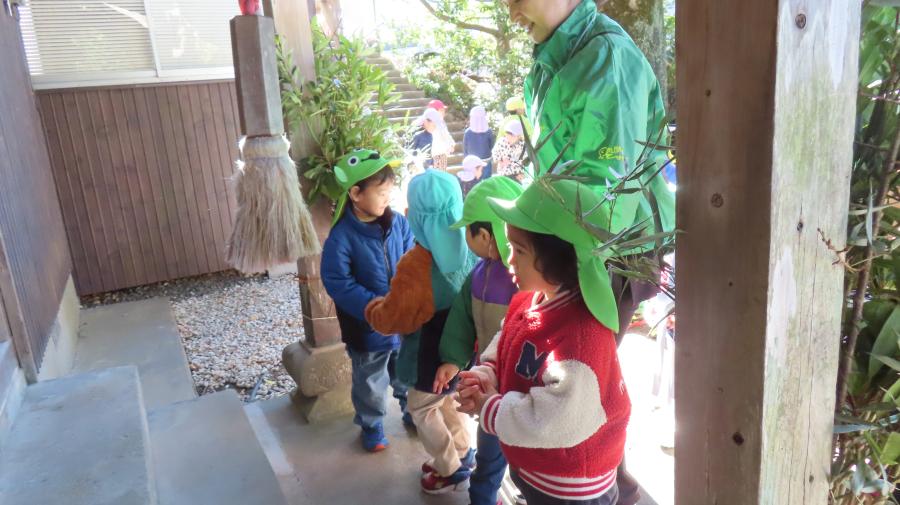 先に来ていたひまわり組さんと交代して参拝へ