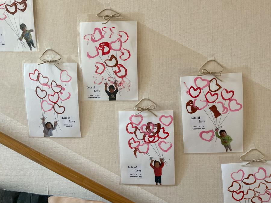 子どもたちの写真を添えると、ハートの風船に浮かぶ子どもたち
