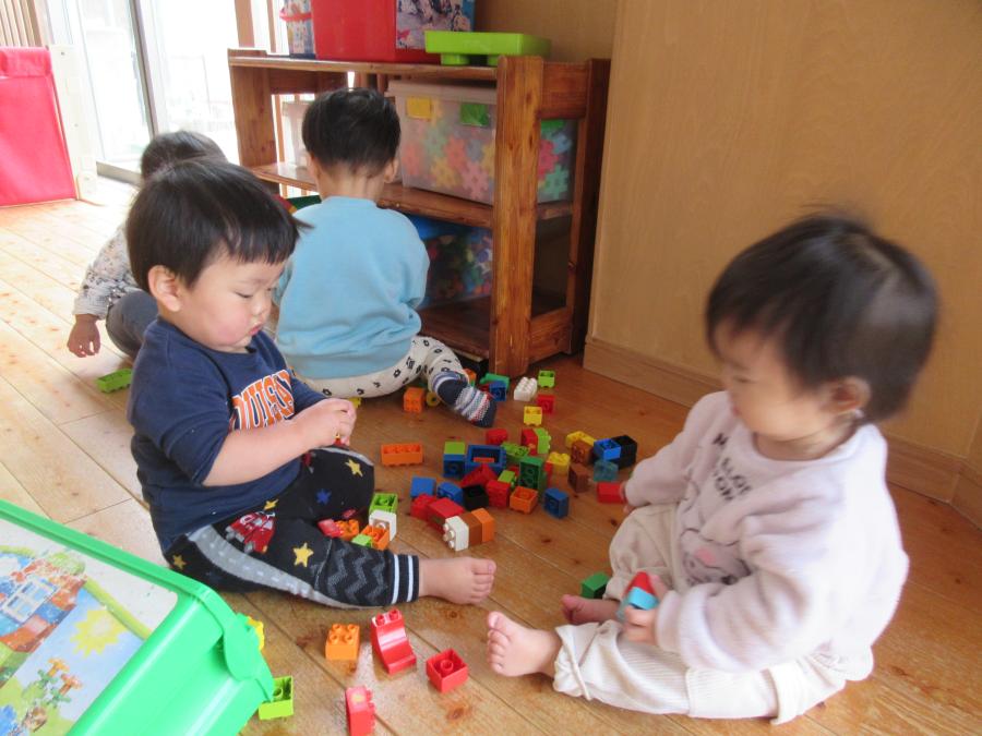 子ども同士でレゴブロックを使って大きな作品を作ったり、ごっこ遊びを楽しむ姿が見られるようになりました