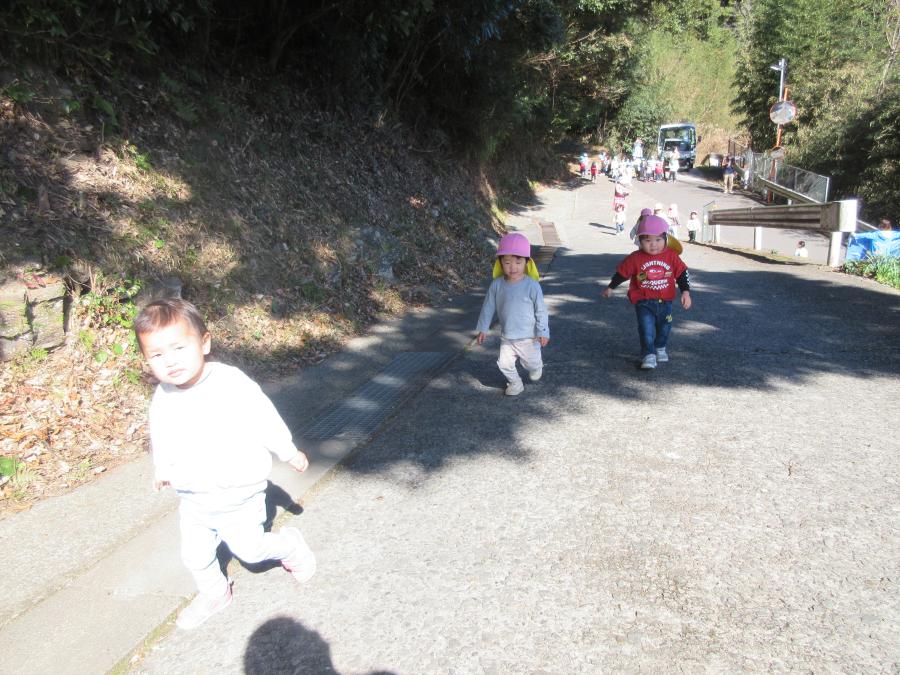 たんぽぽ組さんは、走るお兄さんお姉さんの側まで応援に行きました